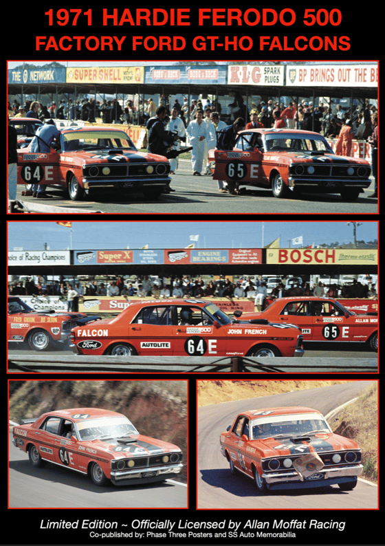 1971 Hardie Ferodo 500. Factory Ford GT-HO Falcons. New Print. Licensed Allan Moffat Racing.