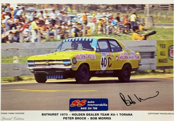 Bathurst 1970 Hardie Ferodo 500. HDT Torana XU-1 of Peter Brock/Bob Morris signed by Bob Morris